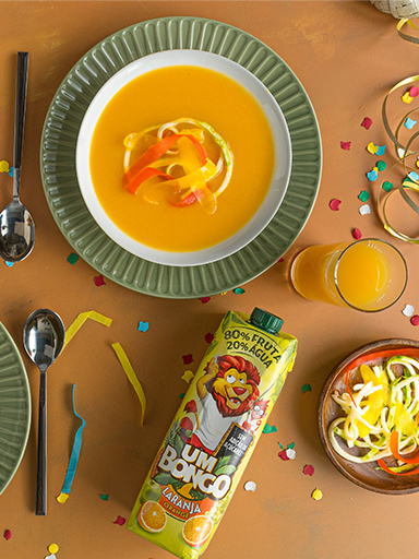- Retifique os temperos e sirva o creme de abóbora com as serpentinas.