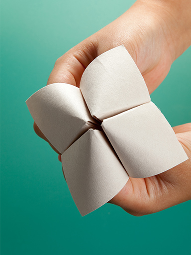 Quem tem o origami deve perguntar “Quantos queres?”, o número indicado deve ser o número de vezes que abrimos e fechamos o origami. Depois o jogador deve escolher uma das quatro cores/ lados que ficam visíveis. Abre-se o quantos queres e lê-se o que está escrito na outra face da cor escolhida.